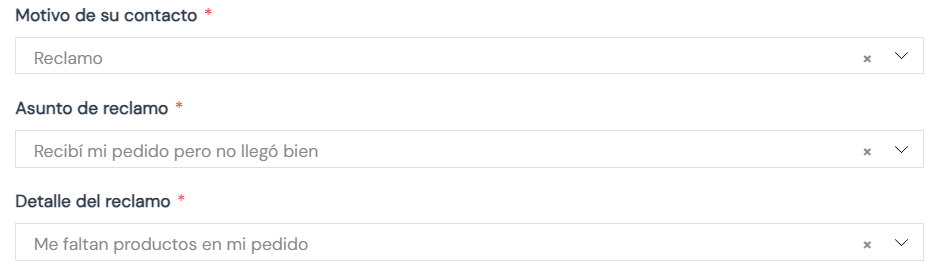 En «motivo de contacto» debes seleccionar «Reclamo»